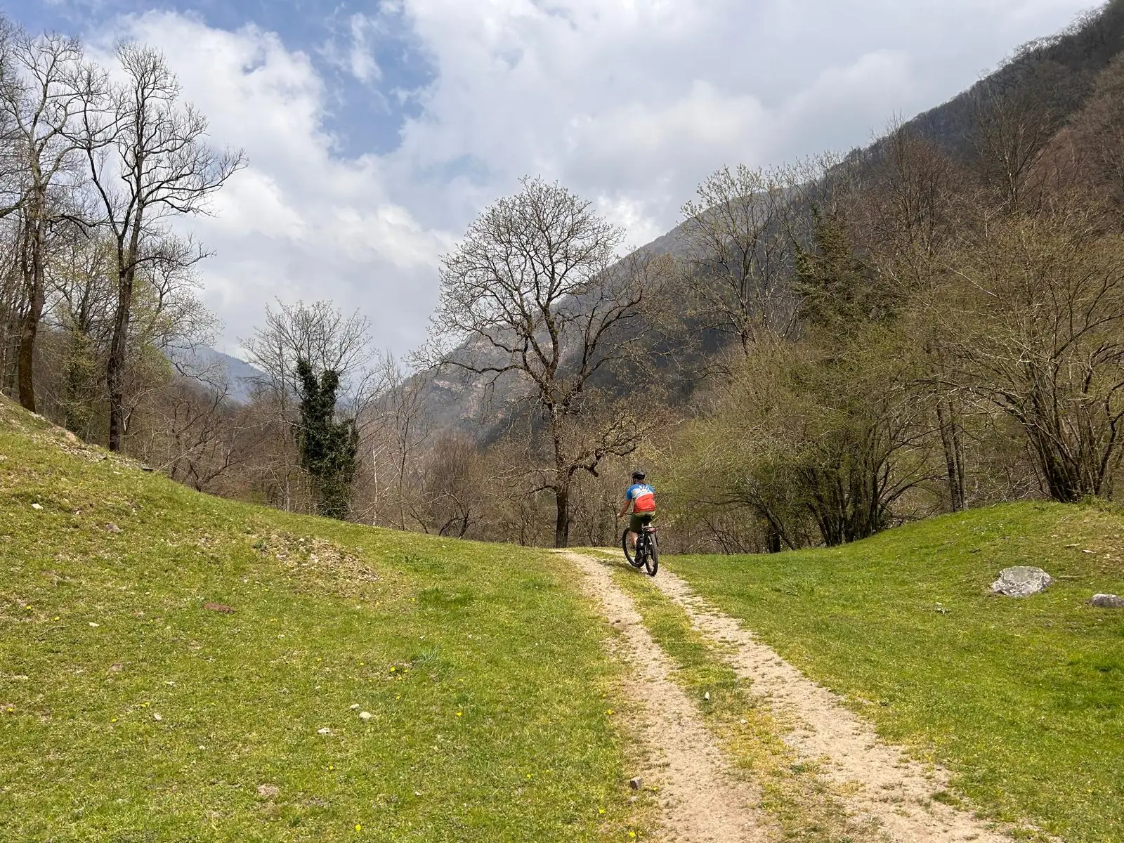 Wir fahren durch zeitlose Tessiner Dörfer und einen friedlichen Kastanienwald, um dann auf einem lustigen letzten Stück auf Waldwegen den ersten Blick auf den Lago Maggiore zu genießen.