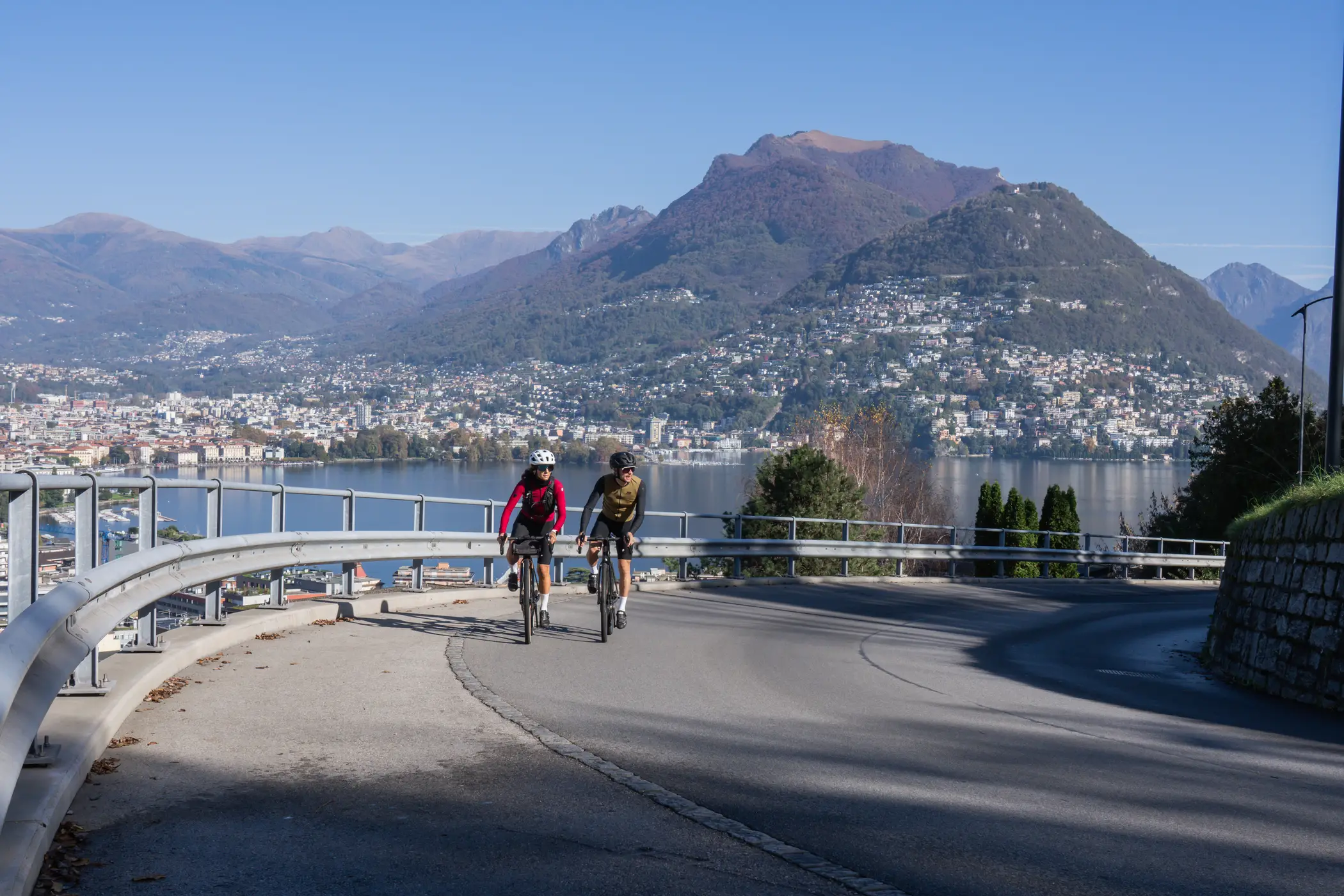 Ein zweitägiger, geführter Ausflug mit dem Rennrad durch die Region Lugano, mit einer Mischung aus sanfter Fahrt am Seeufer, hügeliger Landschaft und anhaltenden alpinen Anstiegen.